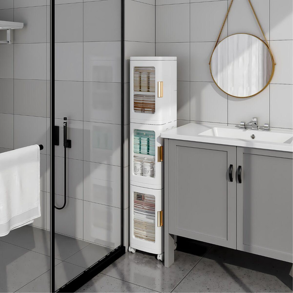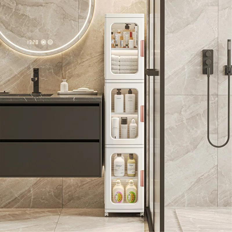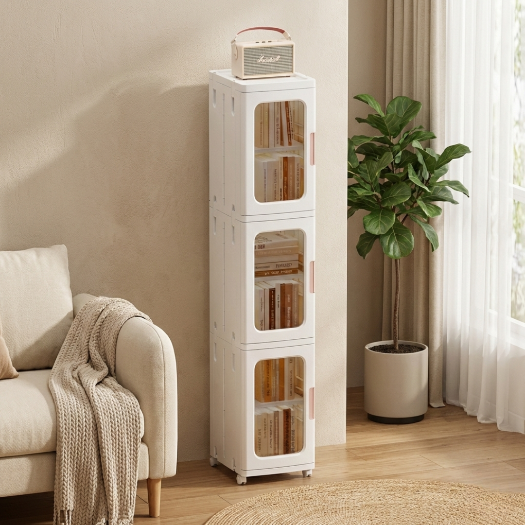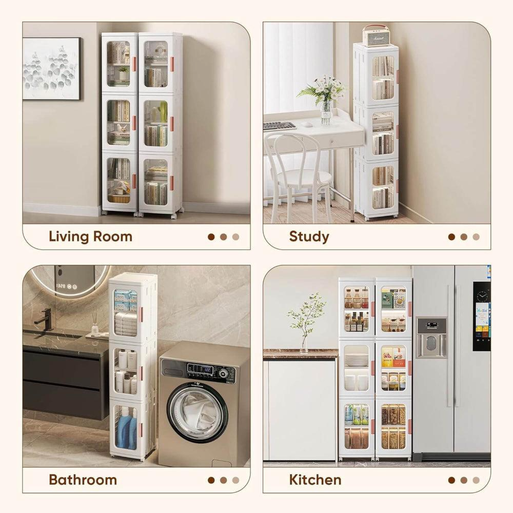 Its slim and modern design makes it ideal for living rooms, bedrooms, offices, kitchens, or bathrooms. The transparent doors allow you to easily see and access your items while keeping them protected from dust. Whether you’re storing books, accessories, household items, or daily essentials, this cabinet offers a practical and elegant storage solution.