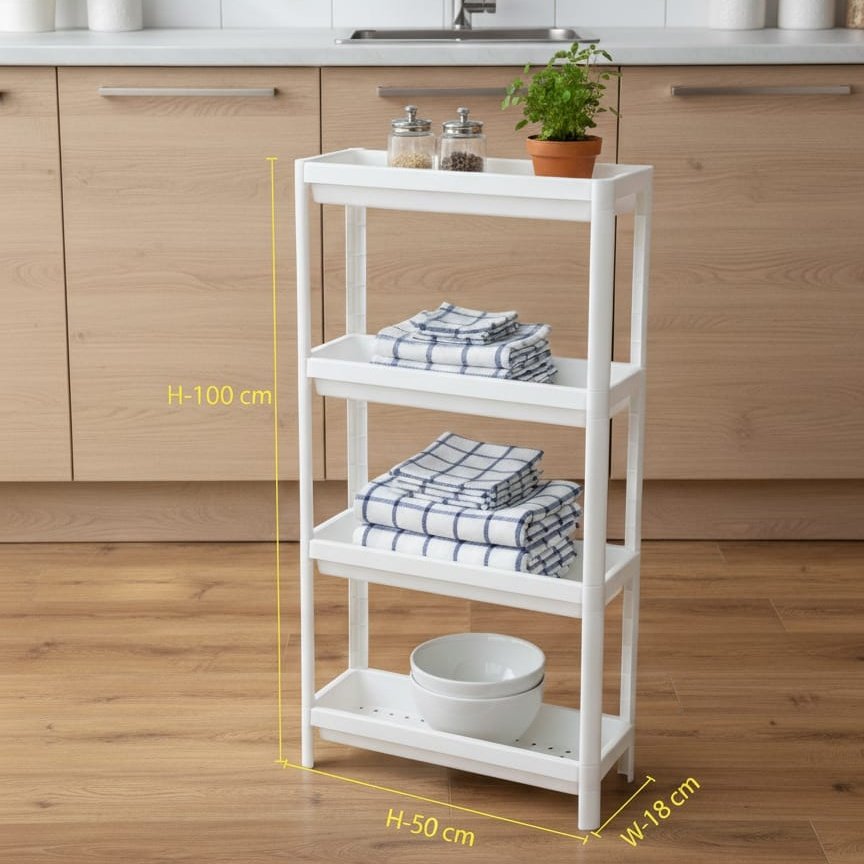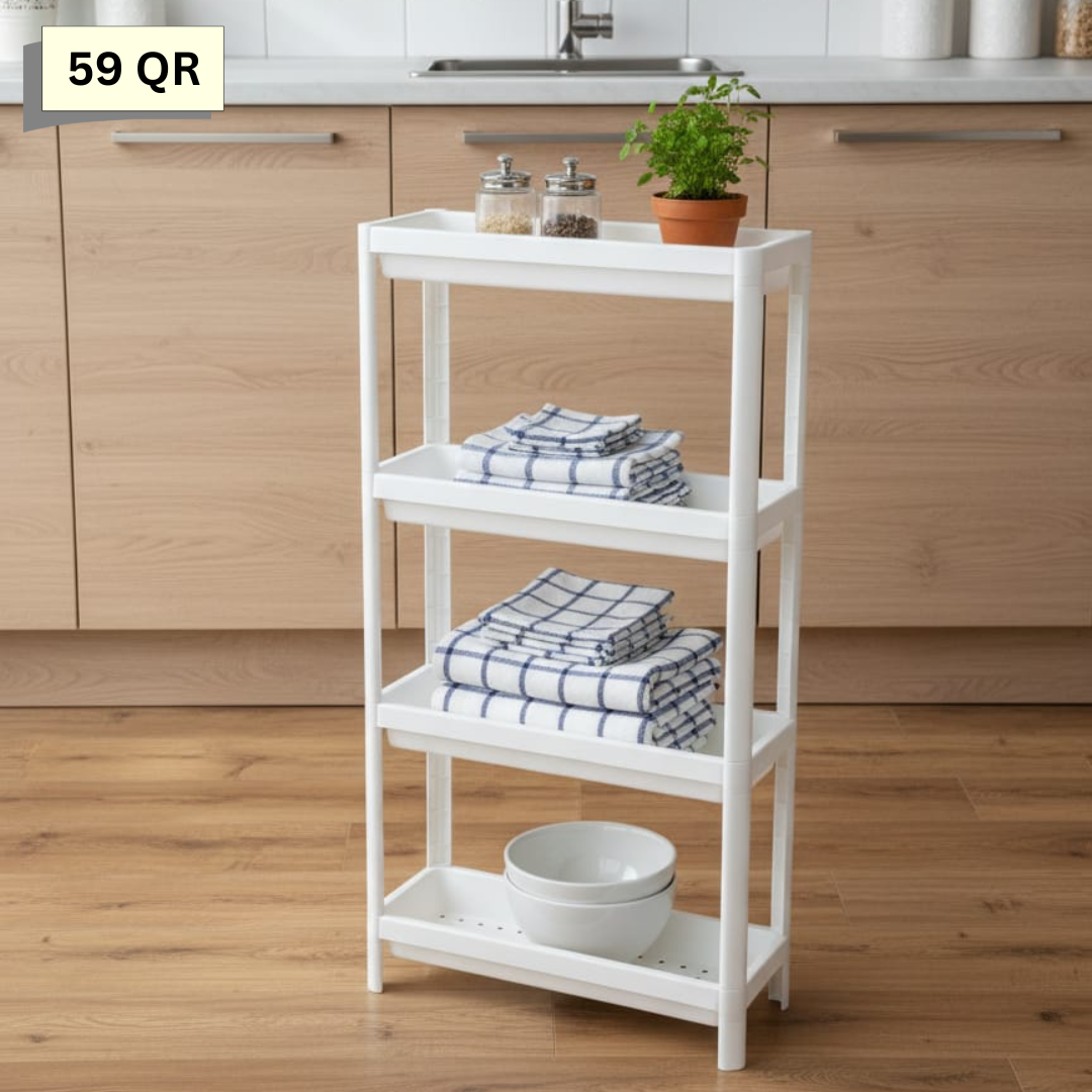 A 4-tier plastic storage rack, perfect for the kitchen, bathroom, or any small space 🏠