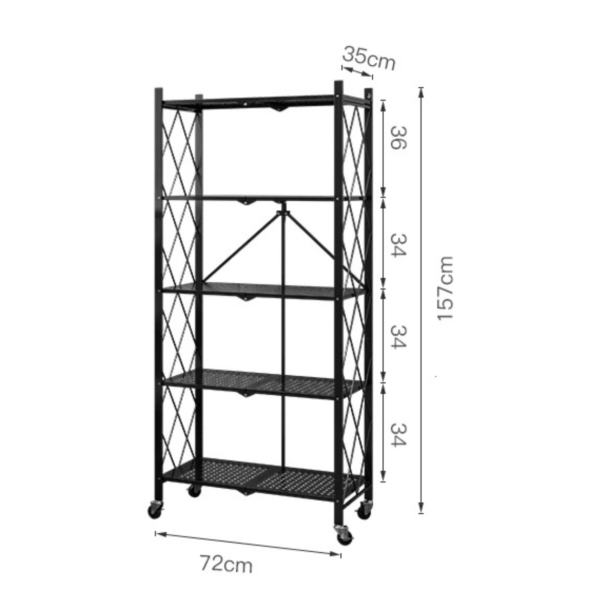 - Shelf Height: 34 cm per level