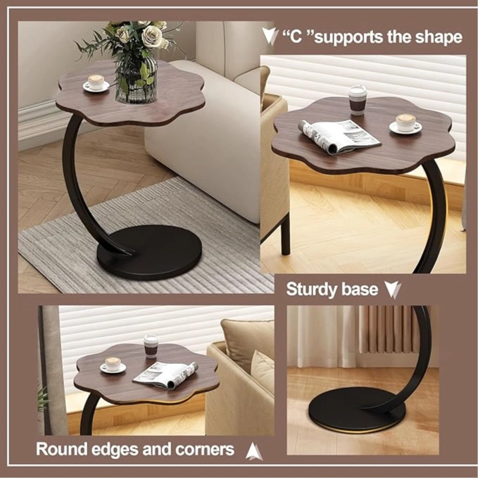 Add a modern touch to your living space with this elegant side coffee table. Designed with a stylish curved metal frame and a smooth wooden top, it perfectly combines functionality with contemporary design.