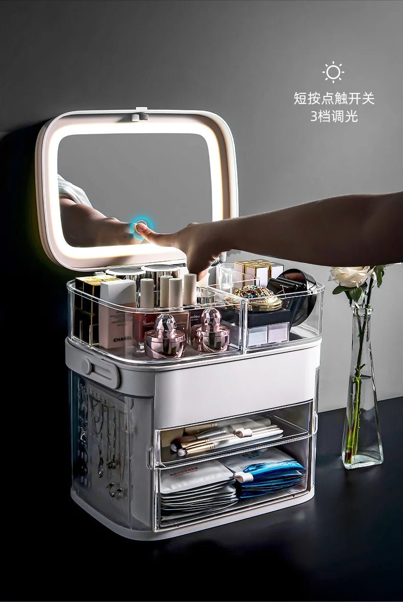 • Built-in LED Mirror: Adjustable lighting levels (Dim, Normal, Highlight) for flawless makeup application.