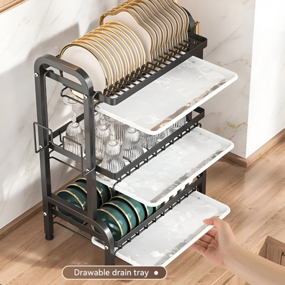 Transform your kitchen efficiency with our Dish Rack 3 Layers. Engineered for maximum storage in a compact footprint, this high-quality drying station offers a sophisticated solution for organizing your dinnerware, glassware, and culinary tools.