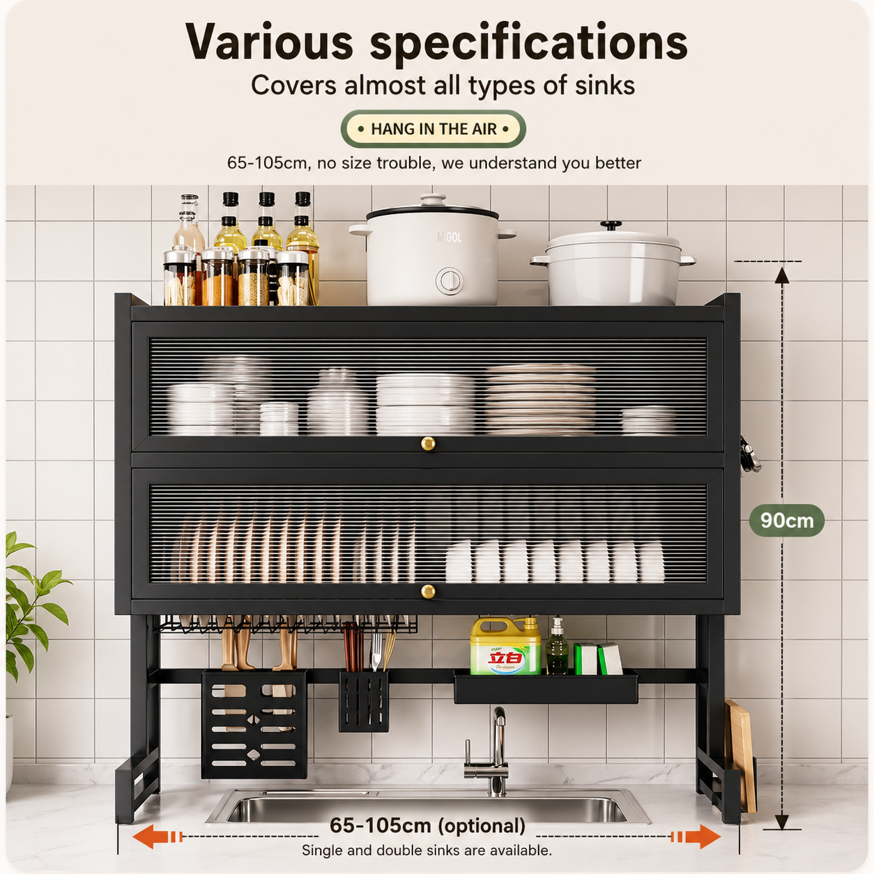 - Space-saving over-sink design