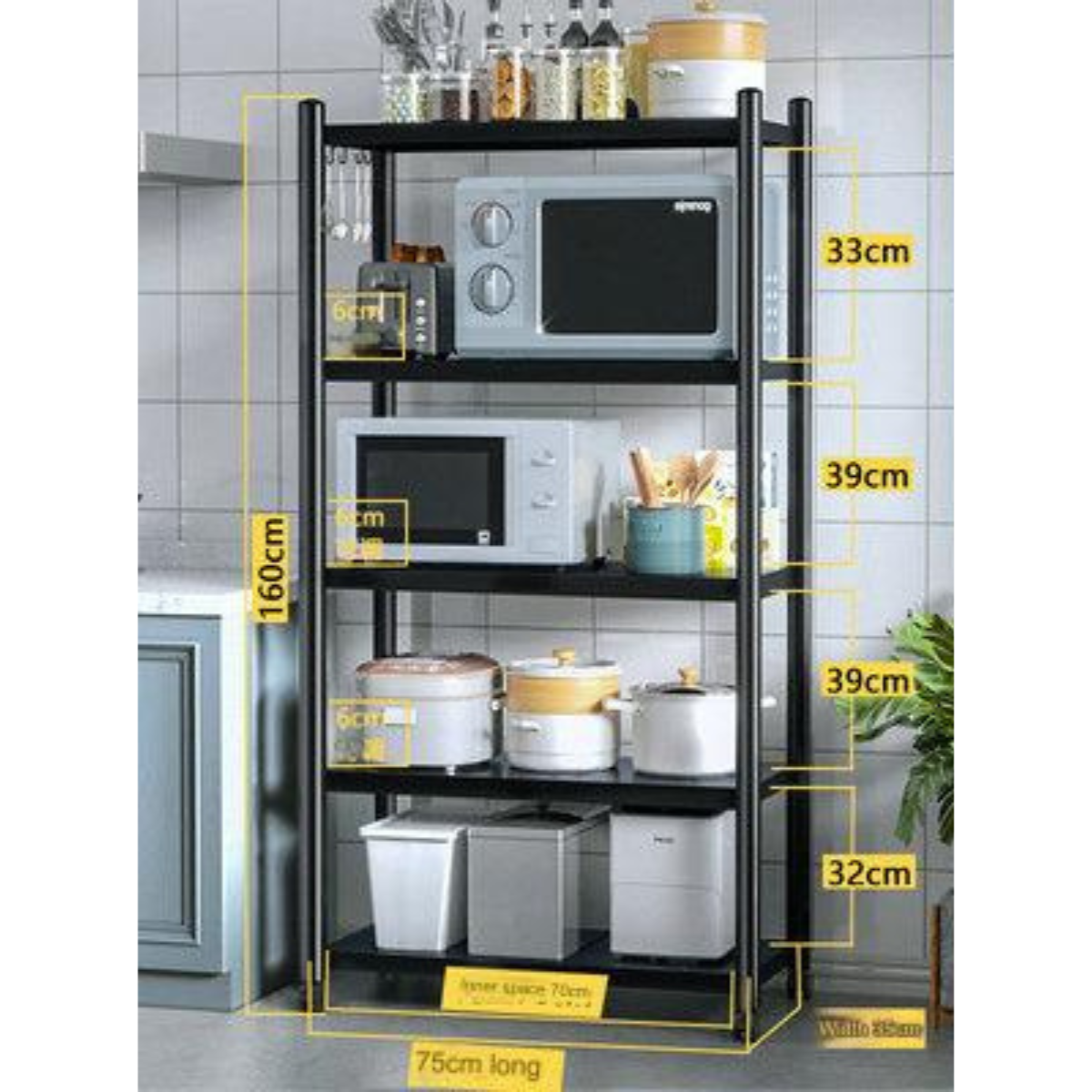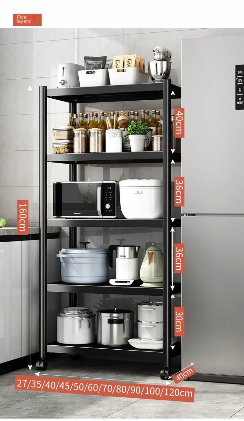 Keep your kitchen neat and efficient with this spacious 5-layer organizer rack — ideal for storing appliances, utensils, pantry items, and more.