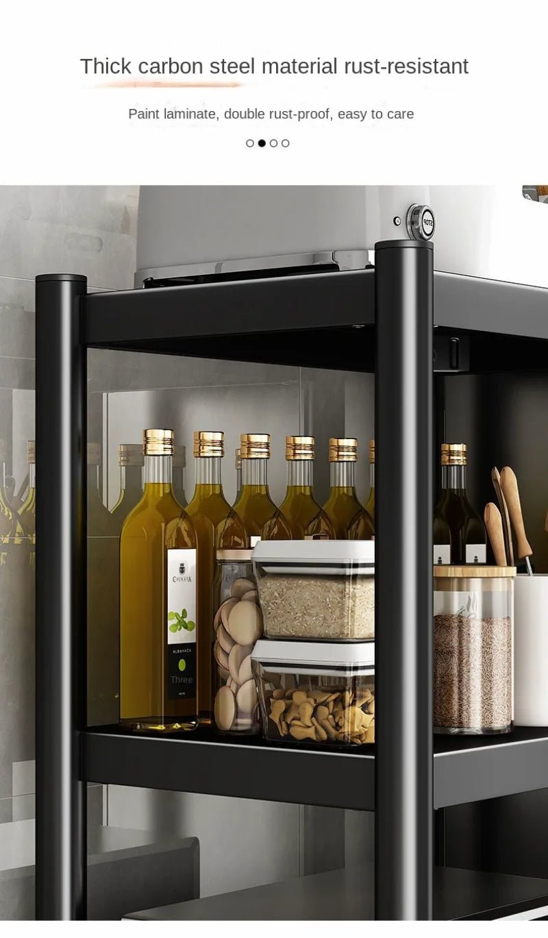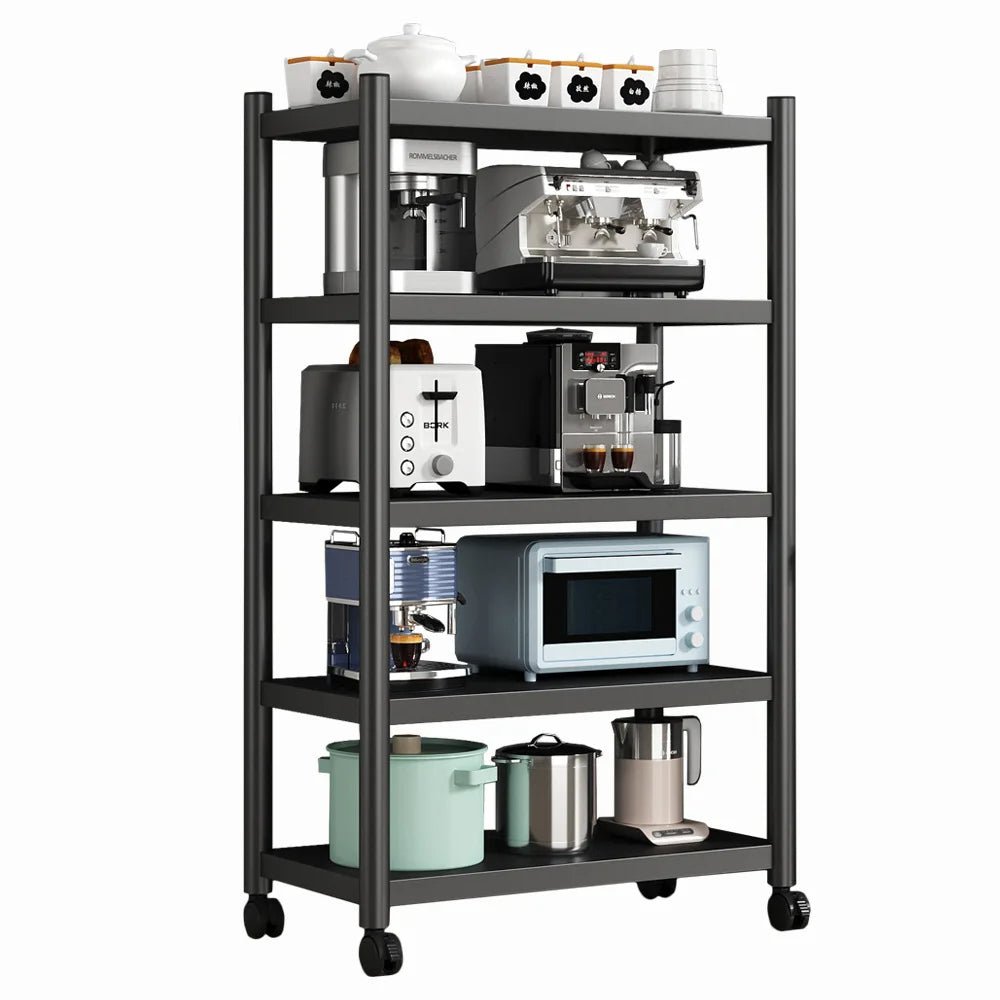🔸 5 Spacious Tiers: Designed to hold microwaves, air fryers, rice cookers, and kitchen supplies all in one place.