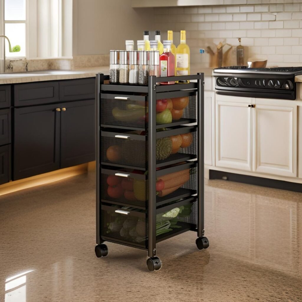 - Full 360° Mobility: Equipped with four smooth-rolling caster wheels, allowing you to move your storage exactly where you need it, whether you’re prepping a meal or cleaning the kitchen floor.