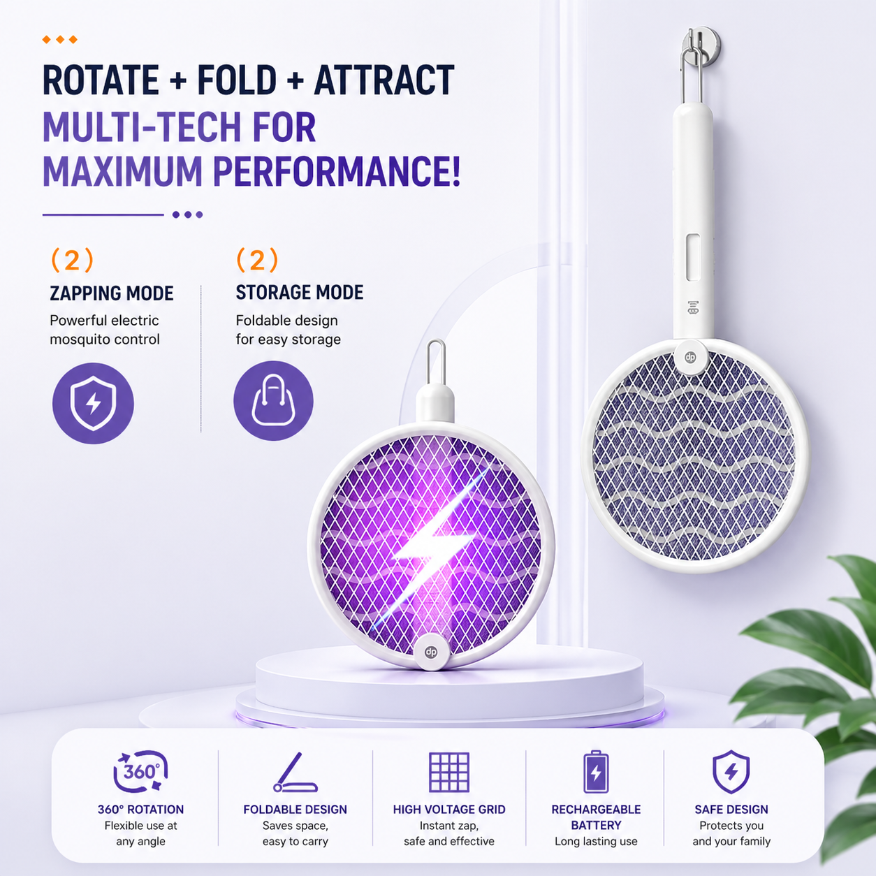 Attracts mosquitoes for easy elimination - 🔄 180° Rotatable Design