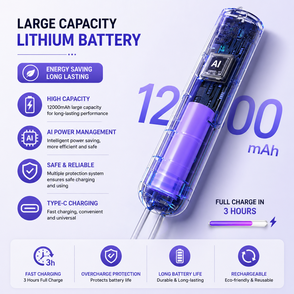 Easy to carry and use anywhere - 🔋 Large 12000mAh Battery