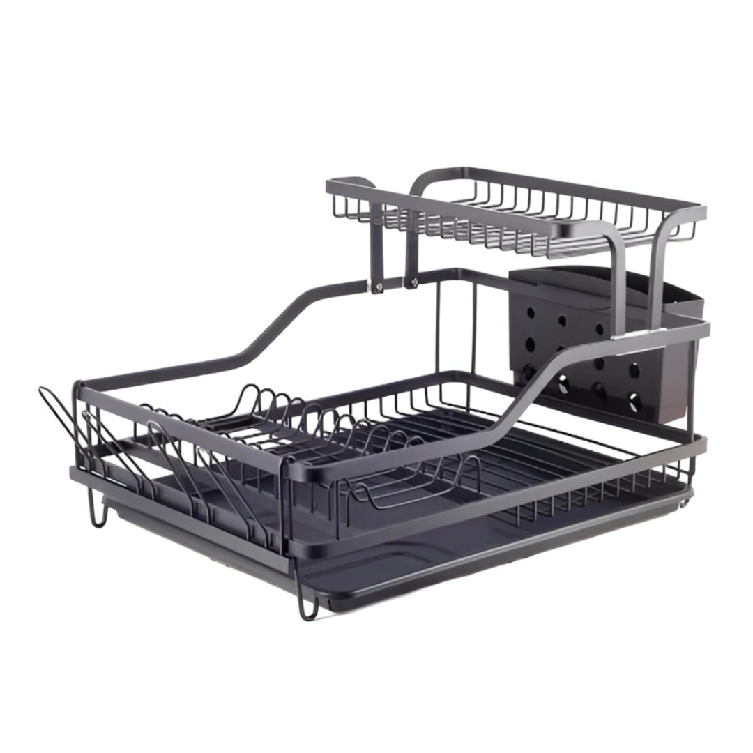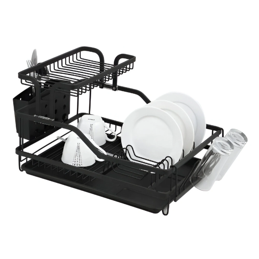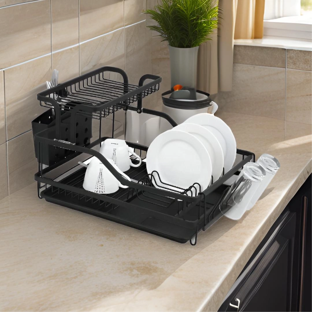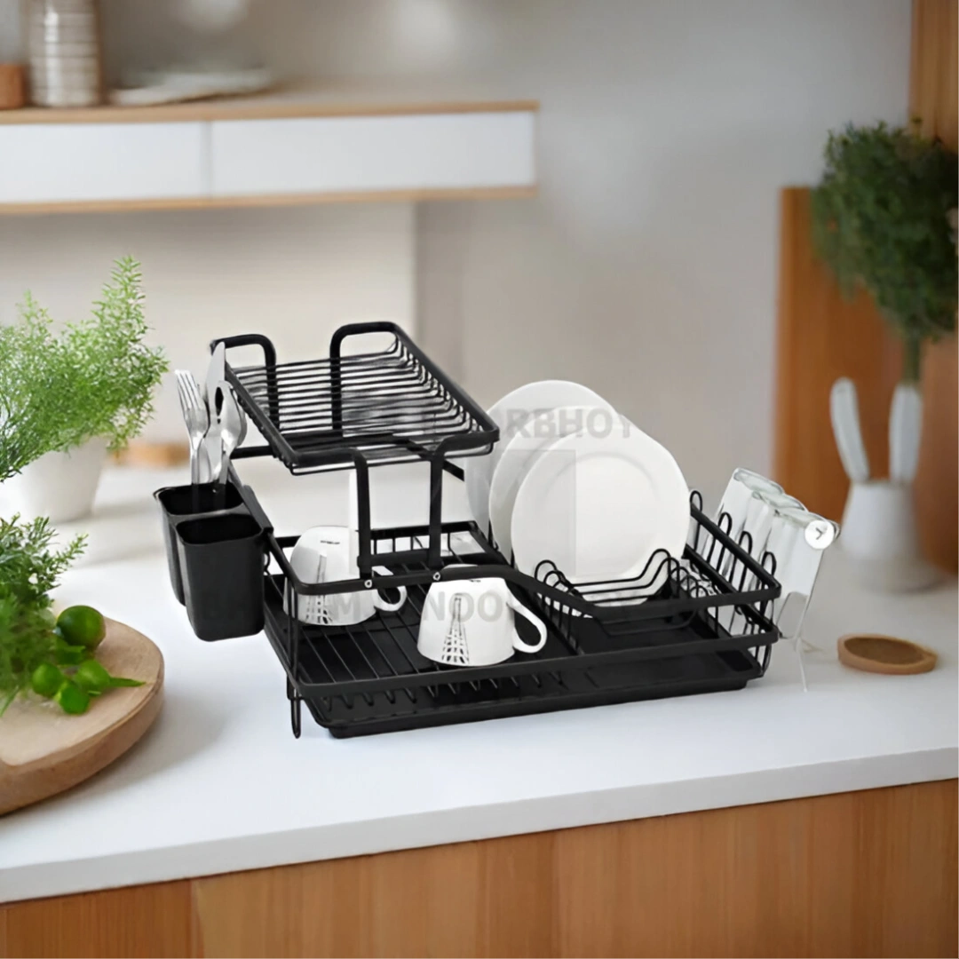 Upgrade your kitchen countertop with our Dish Rack – A. Combining high-quality durability with a space-saving double-decker design, this rack is the ultimate solution for drying your dinnerware efficiently and keeping your sink area clutter-free.