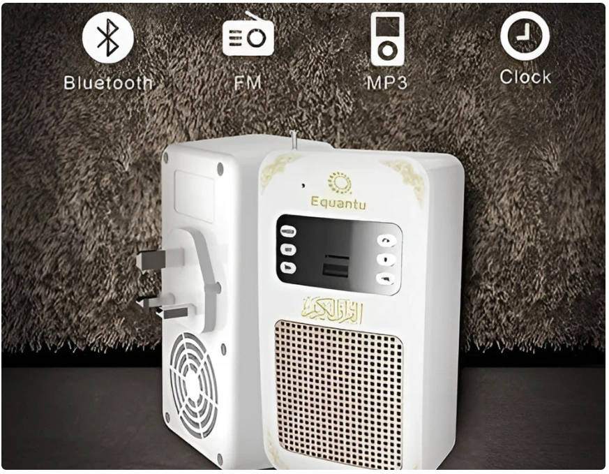 Enhance your home with the beautiful recitation of the Holy Quran using this smart Quran speaker. Designed for convenience and clarity it allows you to listen to Quran recitations easily through a mobile app or remote control.