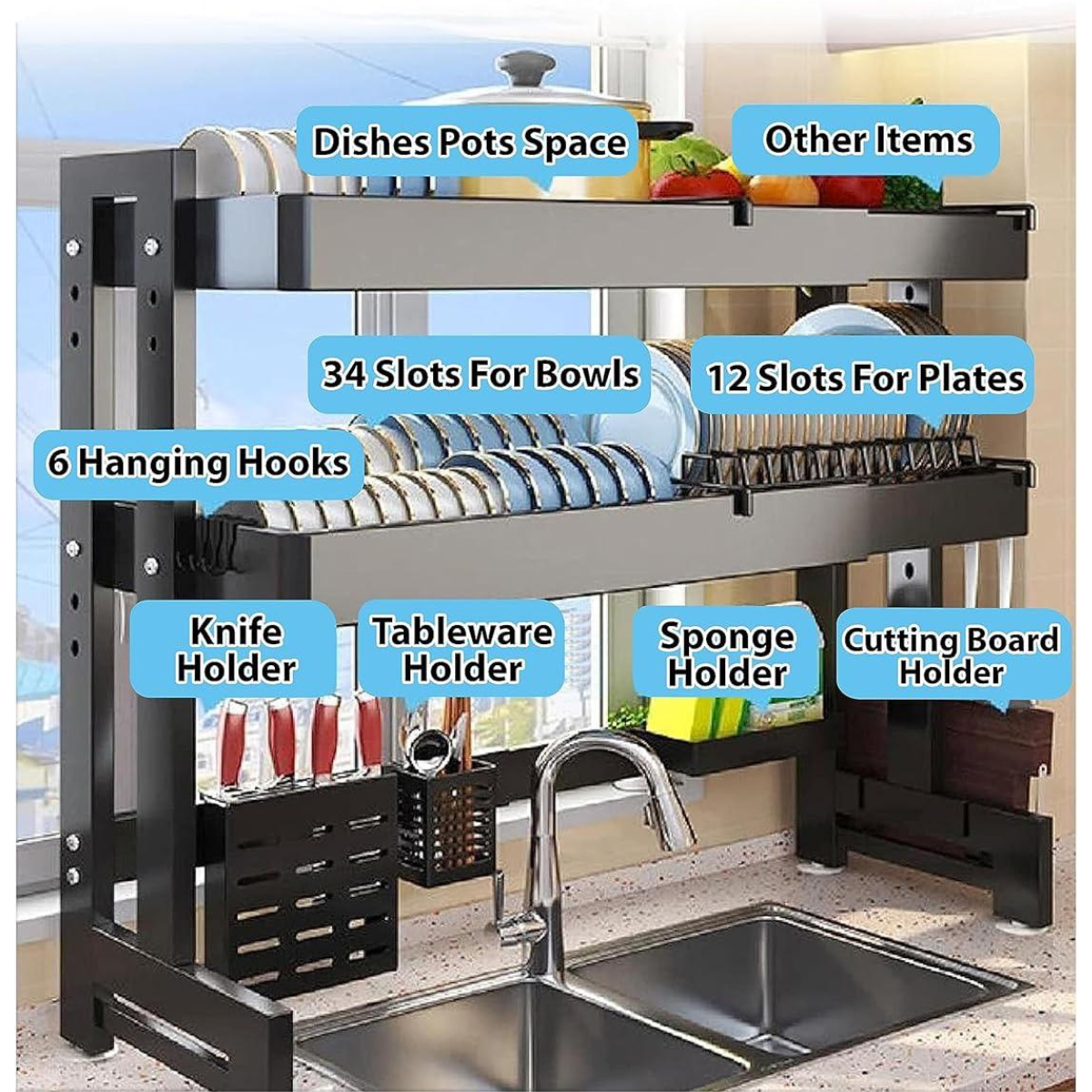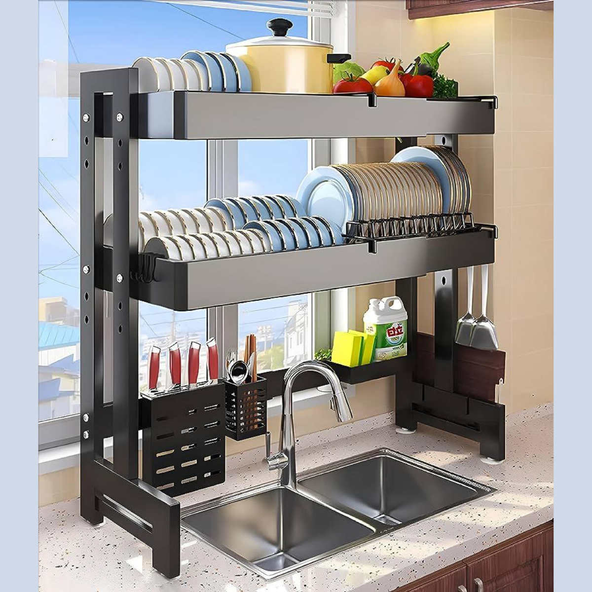 This double-layer sink rack is perfect for organizing your kitchen and keeping your workspace tidy. Its adjustable design makes it versatile for all sink sizes.