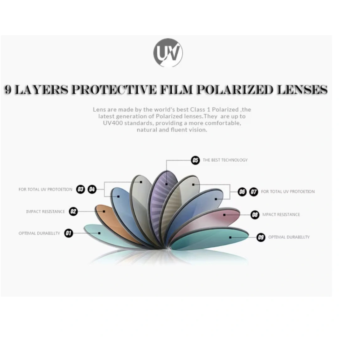 - TAC polarized mirror lenses reduce glare and enhance visibility