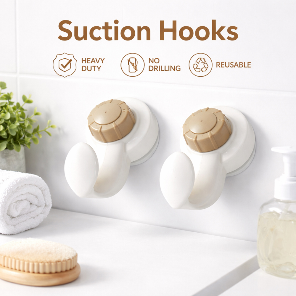 A practical wall hook designed with a suction system for secure installation without drilling or screws. Suitable for everyday use to organize spaces and hang various items بسهولة وأمان.