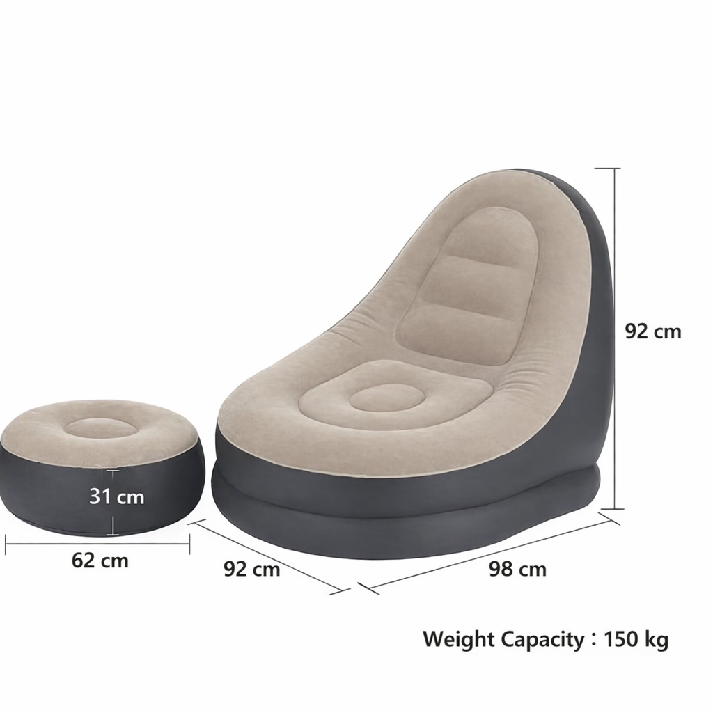 • Included: 1x Inflatable Lounge Chair, 1x Inflatable Footstool