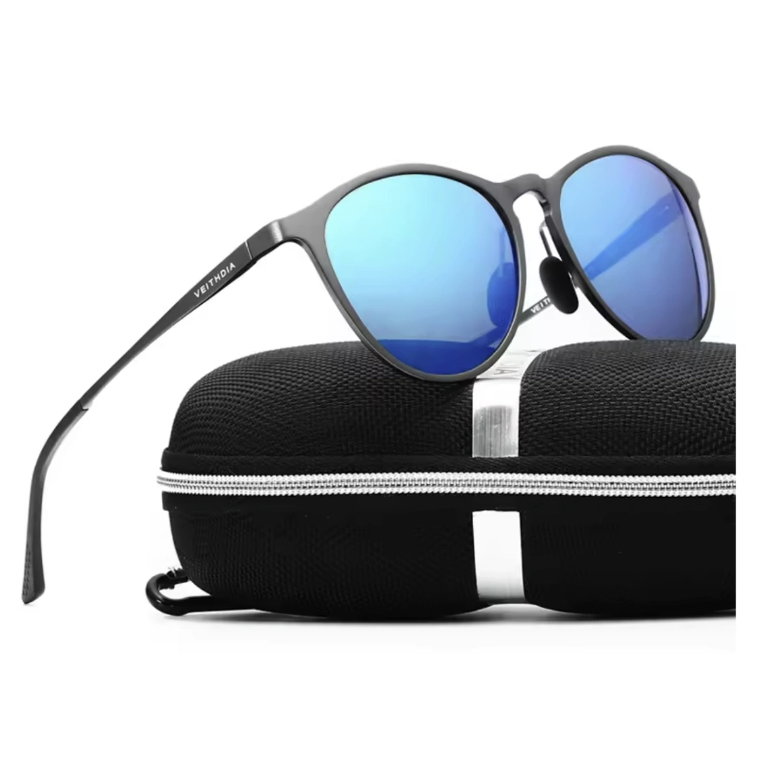 A stylish and fashionable oval-frame sunglasses designed for both men and women. Crafted with a durable aluminum–magnesium frame and TAC polarized lenses featuring UV400, mirror coating, and anti-reflective protection. Ideal for travel, sports, driving, fishing, and everyday wear.